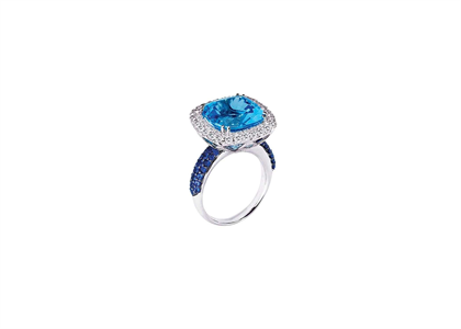 Cocktail Ring with Rhodium Plating measuring 16 mm in width Available in sizes from US- 4 to US- 7 1/2 weighing approx 11.88 grams with High Polish Finish