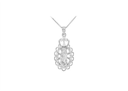 This significant & elegant Rhodium Plated Mother Mary Pendant is handcrafted with an elaborate polished & textured design