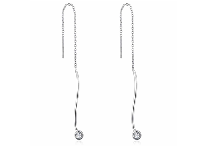 These Rhodium Plated 14 KT CZ Studded Stick Threader Earrings feature a polished finish and are 70 mm in size.