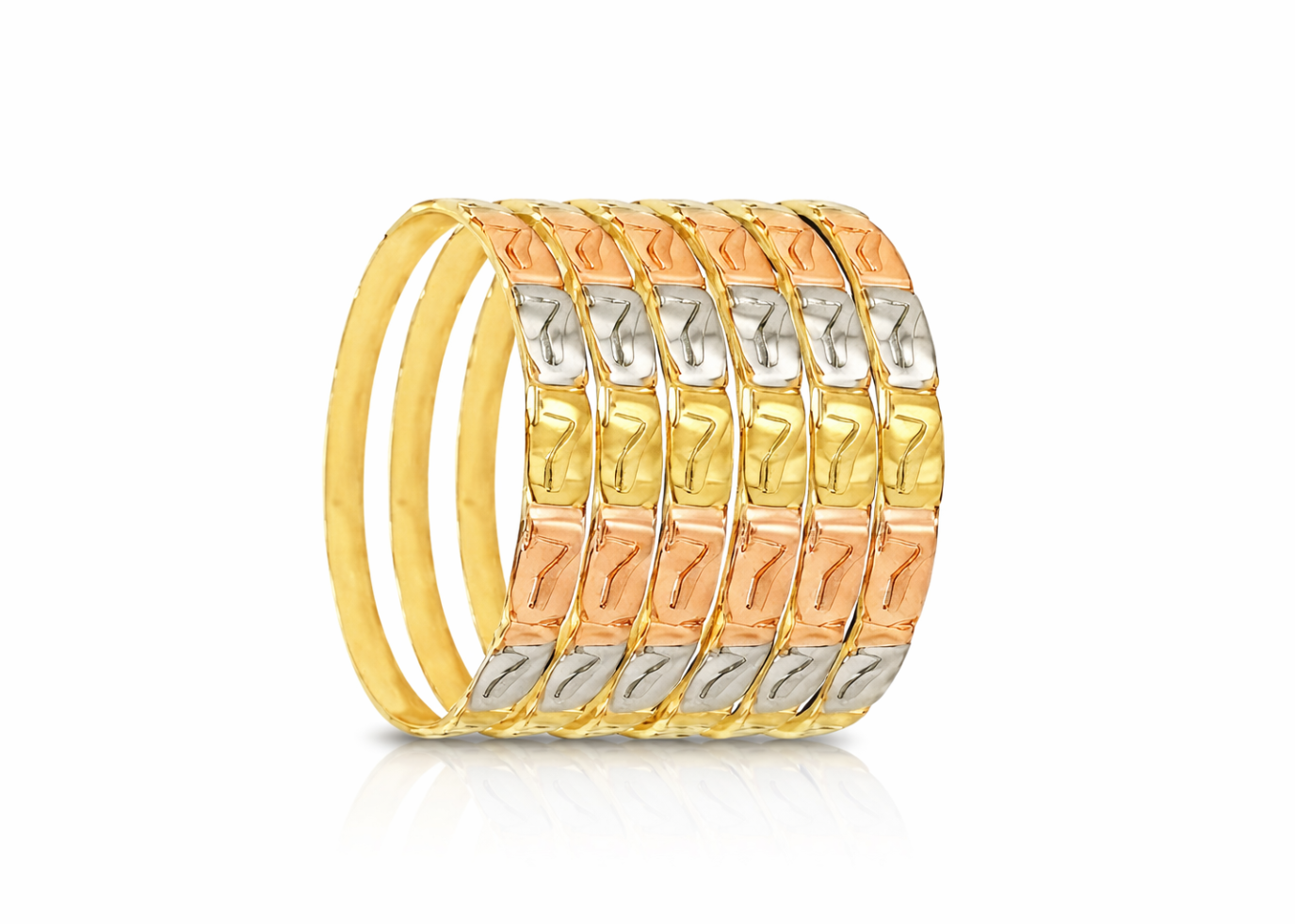 Tri Color Plated Punched Bangles 6 MM Wide Available in All Sizes US #1 To US #8