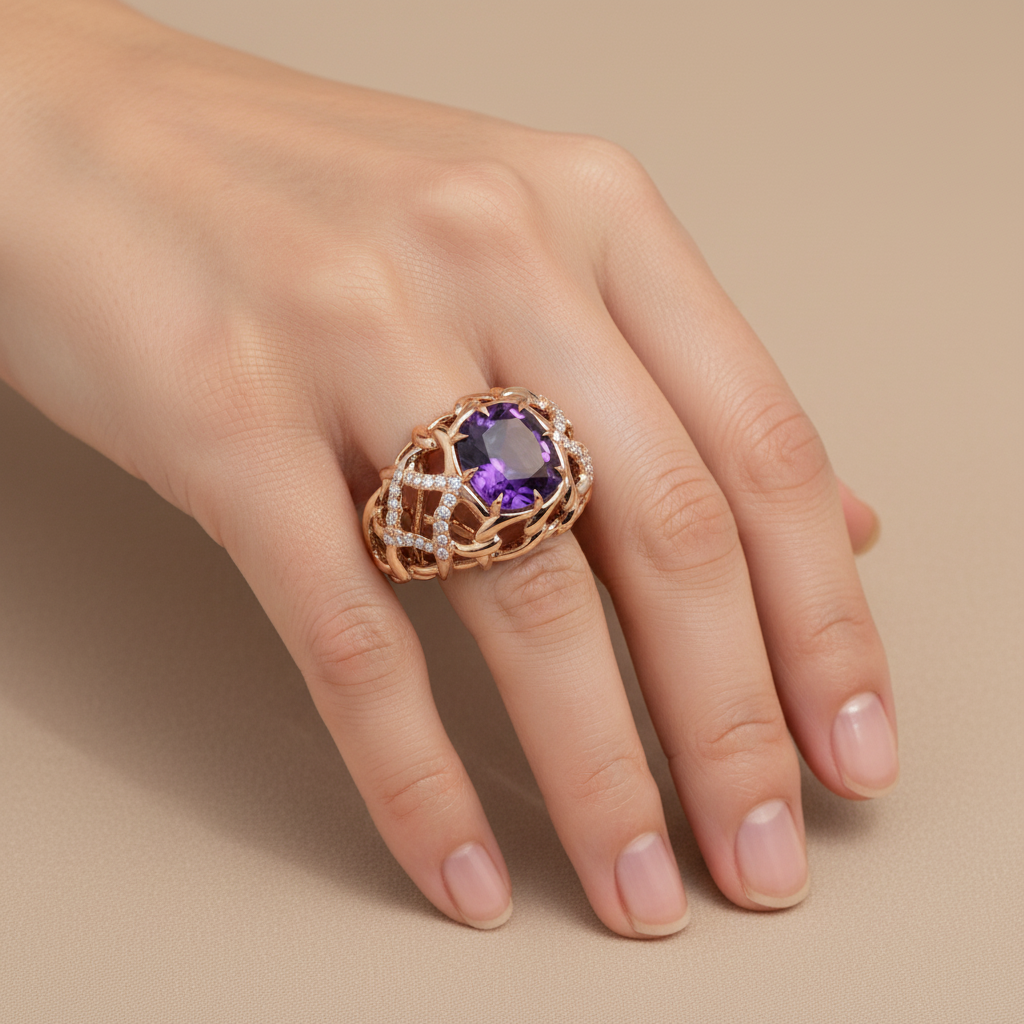 CZ Studded Gemstone Mens Ring, measuring 13 MM in width, set with 12X10 MM purple cushion cut stone, Available in sizes from US-8 to US-14, weighing approx 7.20 grams