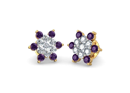 Gold Plated CZ Studded Gemstone Stud Earring