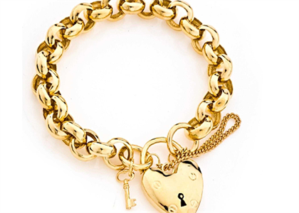 Gold Plated Heart Lock and key Charm Bracelet, weighing approx 19.44 grams, with High Polish Finish