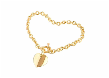 Gold Plated Womens Toggle Heart Charm Bracelet