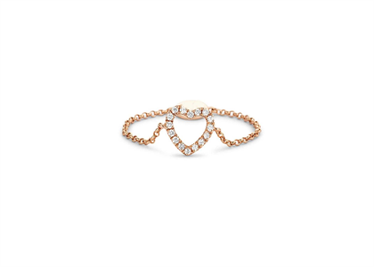 Heart Chain Ring with Rose Gold Plating measuring 7.50 mm in width Available in sizes from US- 4 to US- 7 1/2 weighing approx 0.86 grams with High Polish Finish