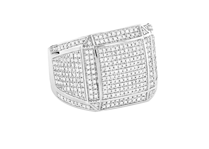 This Rhodium Plated Iced Out Square style represents stones where they go around half the ring. It features Micro Pave setting with a large number of small size stones