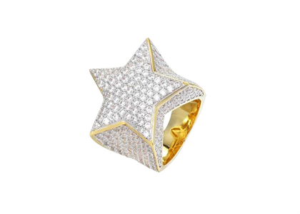 Lined with 14kt gold plating,comes this Pentagram CZ Star Ring. Each of its sharp edges comes lined from point to point with clear, micro CZ's to give this ring its shine