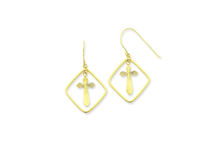 Crafted in 14 KT Gold Plated, each perfectly petite earring showcases a shimmering cross with a gleaming square outline