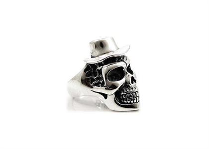Rhodium Plated Long Hair Vampire Skull Mens Ring, weighing approx 21.06 grams, Available in sizes US$ 8 to US$ 14, with High Polish Finish