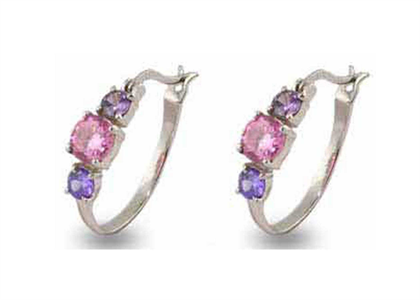 Rhodium Plated Gemstone Earring