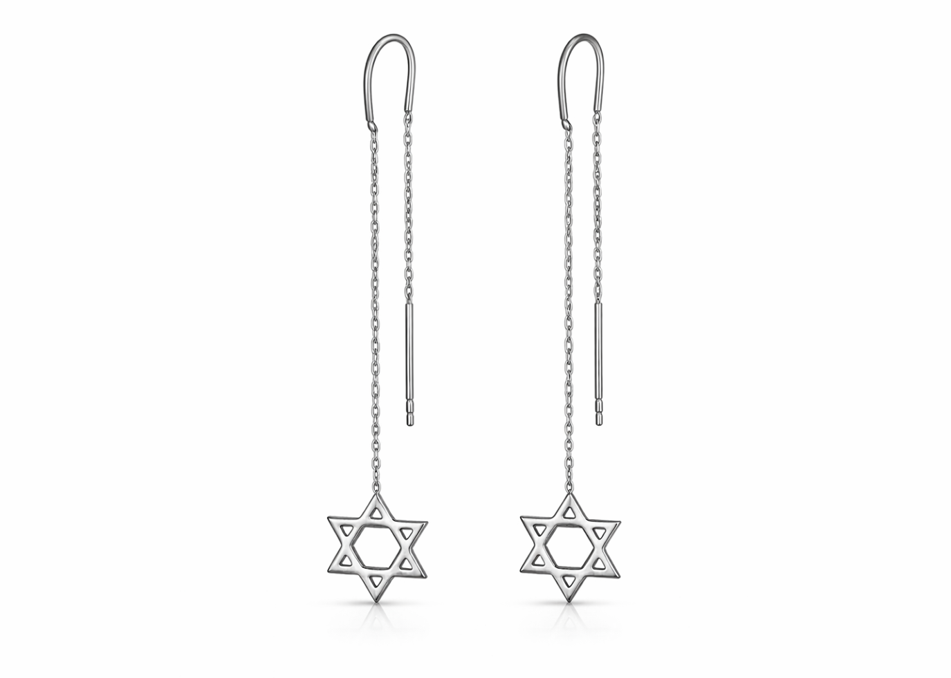 Embrace your faith in style with our Rhodium Plated threader earrings. Shine like a star in our star of david jewelry and have cute earrings to wear for all the holidays.
