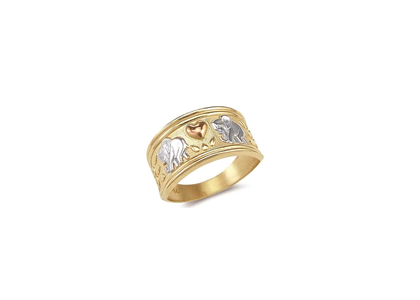 Three Tone Plated Filigree Flower with Heart Shape Ring with 25 MM width, Available in size US# 4 to US# 8