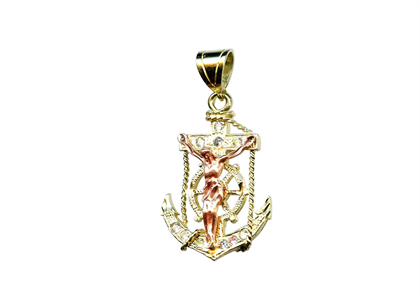 Two Tone Plated CZ Studded Jesus Cross Anchor Pendant with 32 MM Length, weighing approx 5.62 grams, with High Polish Finish