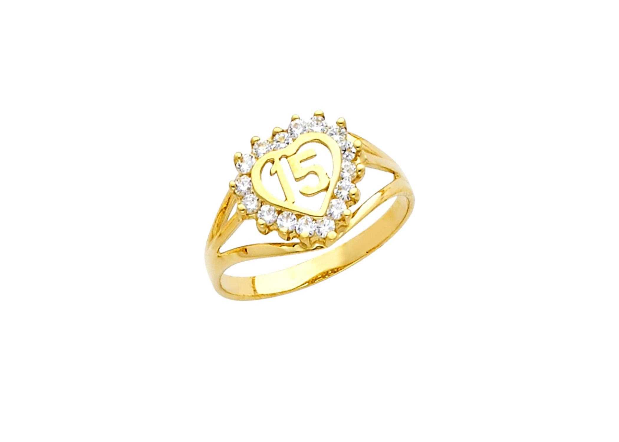 Numerical Ring in Gold Plating, is a marvelous design of a heart that encases the number 15 with CZ Studded stones all over