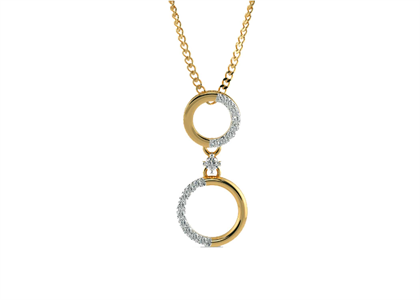 Gold Plated CZ Double Circle Pendant with 28 MM Length, Weighing Approx 6.58 Grams with High Polish Finish