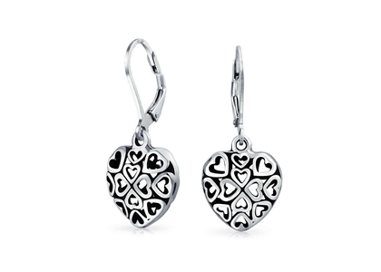 Complete the romantic look you love with these Heart Shape Filigree Lever Back Dangle Earrings with Rhodium Plating