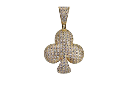 The Playing Card Element Pendant in 14 KT Rose Gold Plated weighs approximately 40 grams and showcases 150 round CZ Stones with enchanting design & excellent workmanship