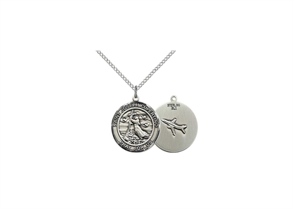 The Round Rhodium Plated medal has an image of St. Joseph on the front with the words "St. Joseph of Cupertino Pray For Us" around the border