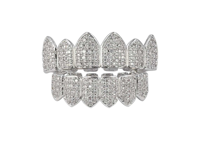 Rhodium Plated Hip Hop Top and Bottom Grillz