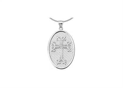 Every twist and curve and section of this Rhodium Plated Long Cross Pendant has been crafted and soldered by hand into the intricate design