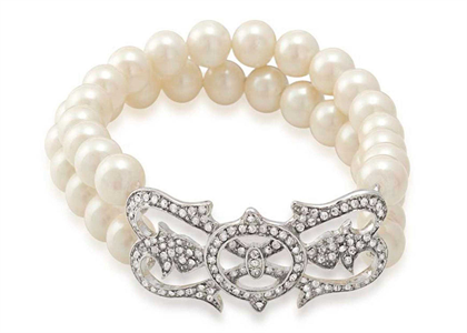 Silver Plated CZ Studded Womens Pearl Bracelet