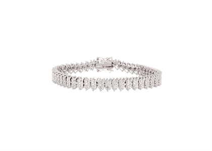 Tennis Bracelet with Rhodium Plating measuring 8 mm in width Available in sizes from 6" Inches to 8.5" Inches weighing approx 23.59 grams with High Polish Finish