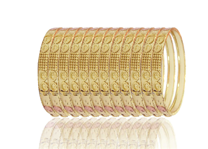 Three Tone Plated Diamond Cut Bangles, with 8 MM width, Available in sizes US $ 1 to US $ 8