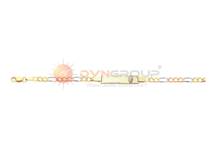 Three Tone Plated Virgin Mary Figaro ID Bracelet, with 5 mm width, weighing approx 8 grams, Available in sizes from 6" Inches to 10.5" Inches, with High Polish Finish